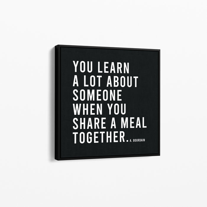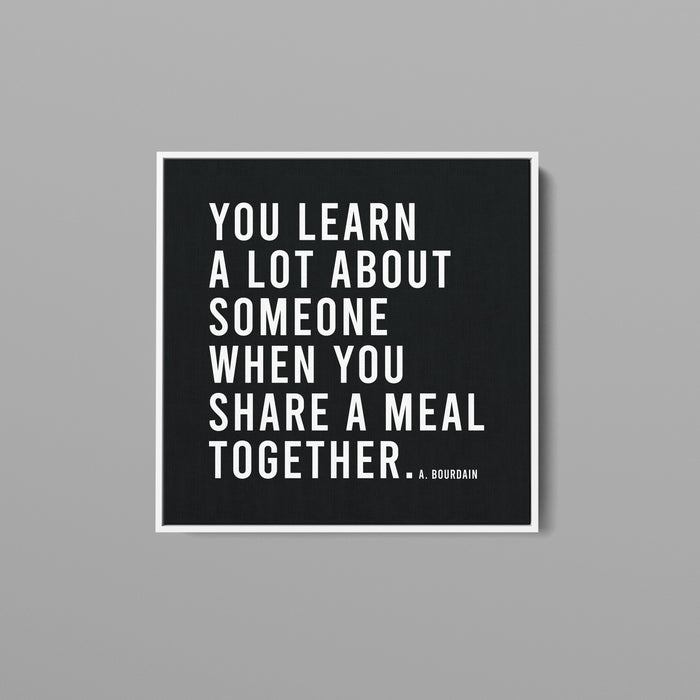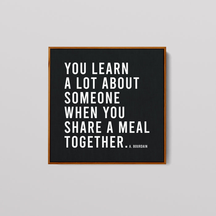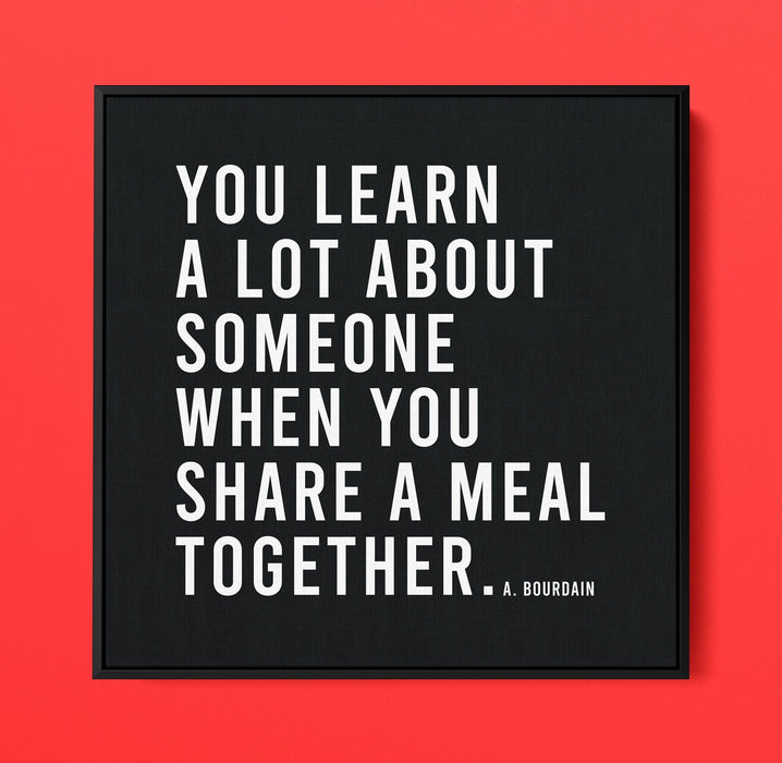 Introducing our Canvas Poster, featuring Anthony Bourdain's wisdom: "You learn a lot about someone when you share a meal together." This minimalist artwork complements any space with its clean design on premium canvas. Ideal for home or office, it adds a touch of connection and understanding to your decor.